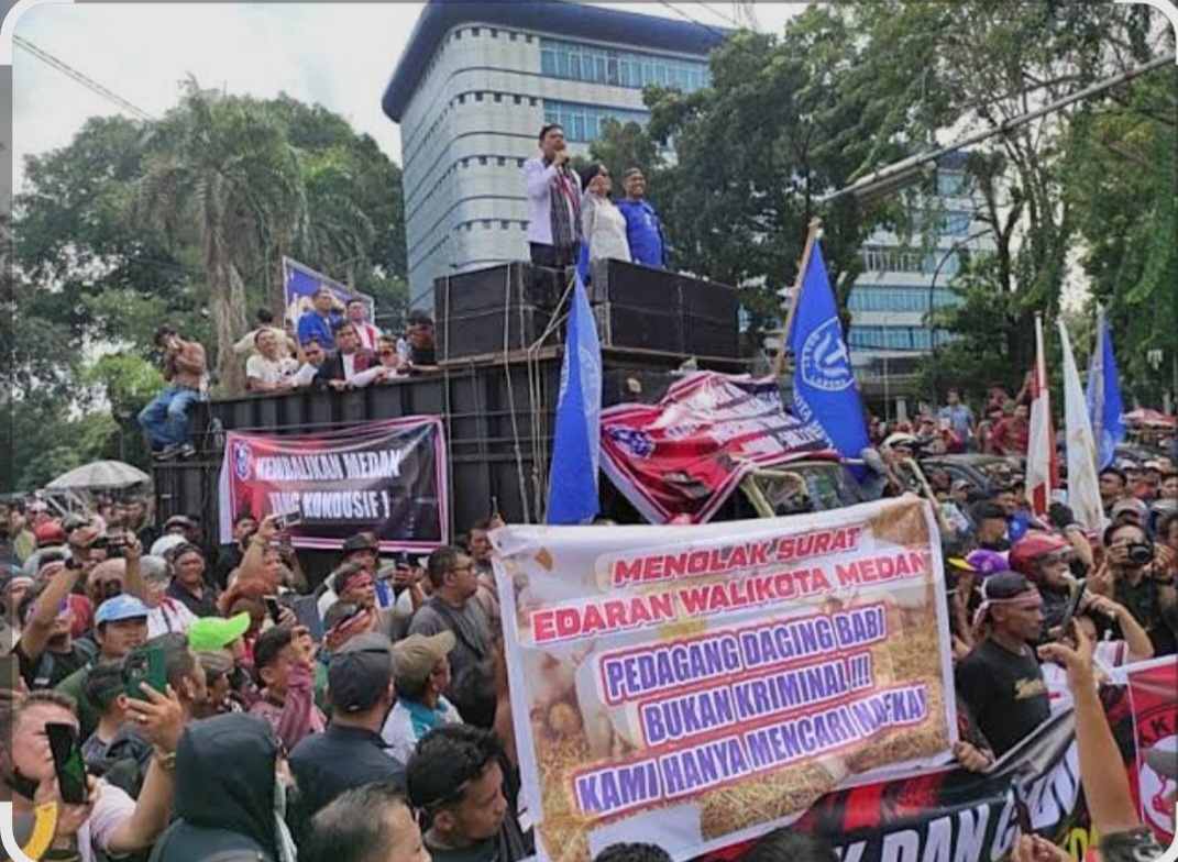 Medan – Garda News.com Surat Edaran (SE) Wali Kota Medan Nomor 500.7.1/1540 tentang Penataan Lokasi dan Pengelolaan Limbah Penjualan Daging Nonhalal menuai polemik serius. Ribuan massa turun ke jalan memprotes kebijakan tersebut, namun di balik gelombang demonstrasi, muncul pertanyaan yang lebih mendasar: apakah SE itu memiliki kekuatan hukum yang cukup dan apakah substansinya berpotensi melanggar prinsip hak asasi manusia?